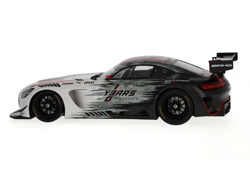 Tax Included130 years of motorsport - truly a reason to celebrate! With the miniature model of the Mercedes-AMG GT3 you also can bring the celebrations into your own four walls and receive a 1:18-scale miniature model that leaves nothing to be desired in terms of the level of detail. After all, the precision model was assembled by hand from over 120 separate parts and stands out with its accurate representation of all the interior details in the high-quality decorated interior. The model is also finished in the authentic paintwork colour and printed with the Celebration 130 Years of Motorsport livery. The GT3 model comes in Mercedes-AMG Motorsport packaging.